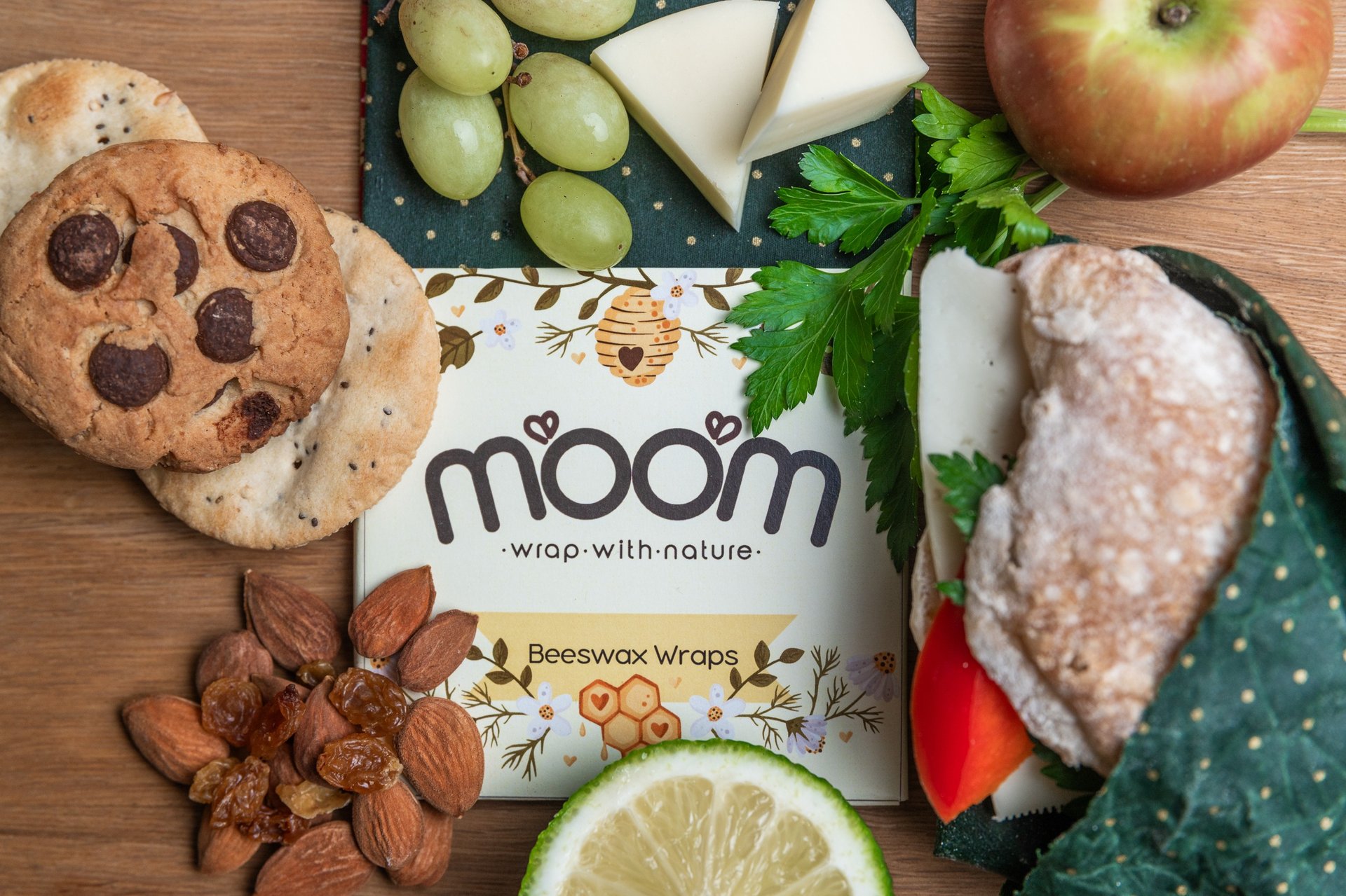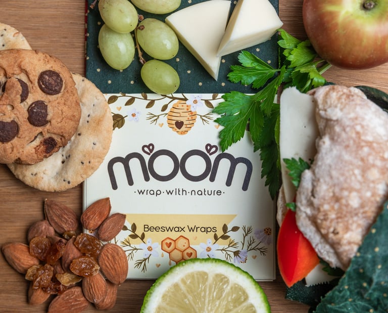Grande (40cm x 40cm): Ideal para cobrir taças maiores, embrulhar pão, folhas verdes ou frutas e legumes maiores. Ao contrário do plástico, os wraps Moom evitam a condensação, mantendo as tuas folhas verdes crocantes e frescas por mais tempo.